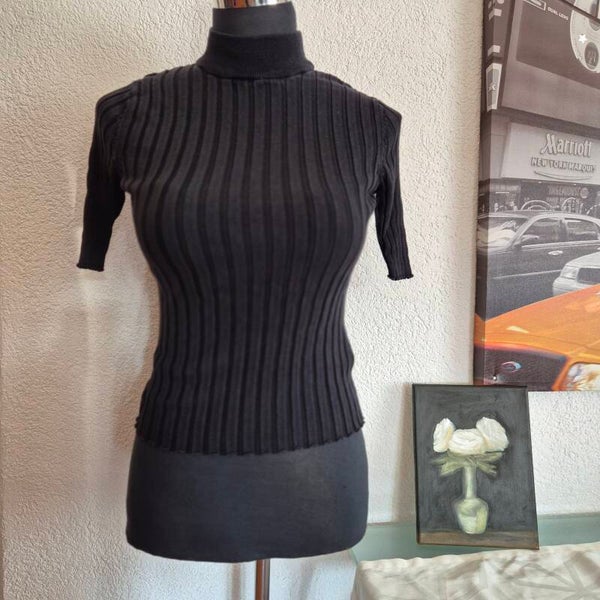Schönes Ripptop mit kurzen Ärmel und kleinem Rollkragen in der Gr. 36.