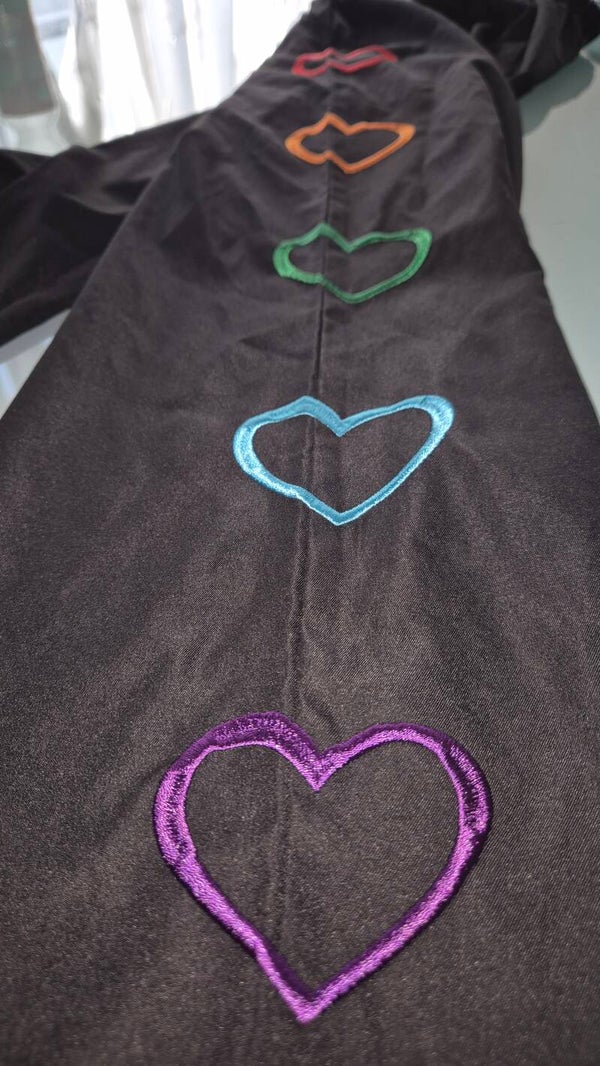 Schöne Stoffhose von Shein in der Grösse 10 Jahre mit schöner und bunter Stickerei an einem Bein, halbem Gummibund und Knopf zur Verzierung