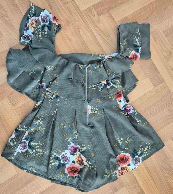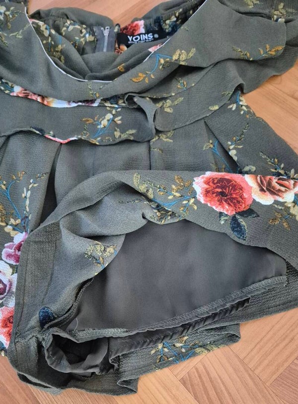 Jumpsuits mit kurzen Hosenbeinen und abgetrennten Ärmelchen von YOINS in der Grösse XS, Volant im Oberteil über der Brust