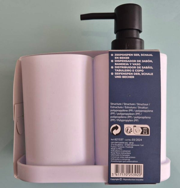 Seifenspender ( 17*6.5*6.5m), Becher (11*6.5*6.5cm) und Ablage (14*7cm) aus Polypropylen (PP)
