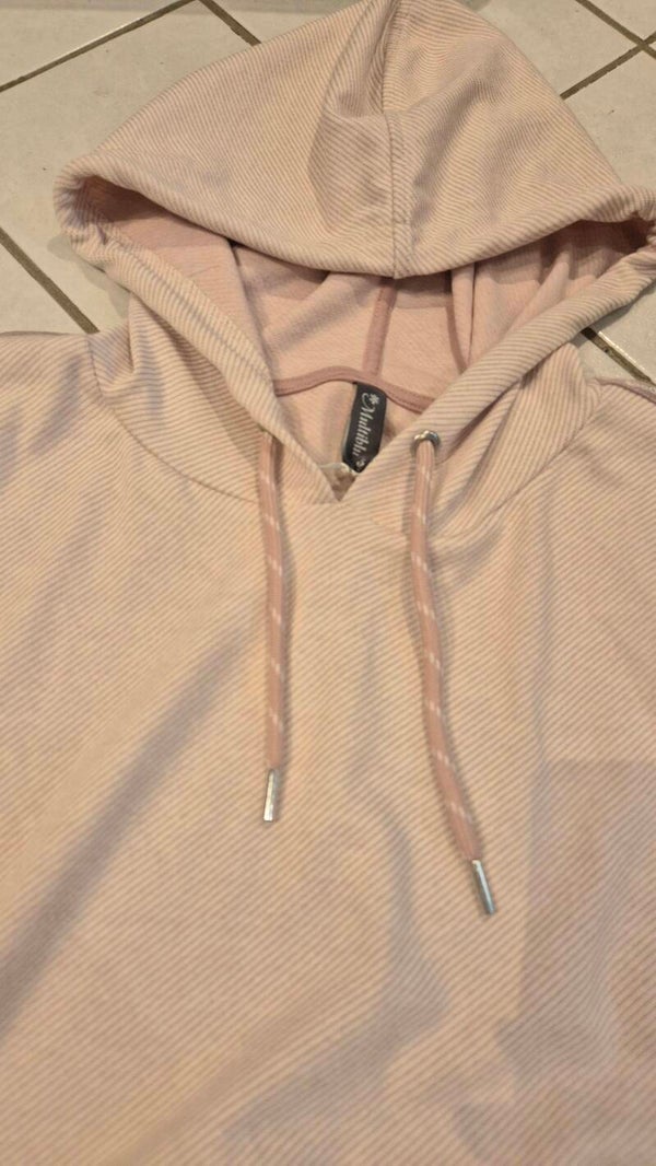 Schöner, leichter Pulli mit Kapuze und ¾Ärmel, mit Bauchtaschen von Multiblu in der Grösse 46